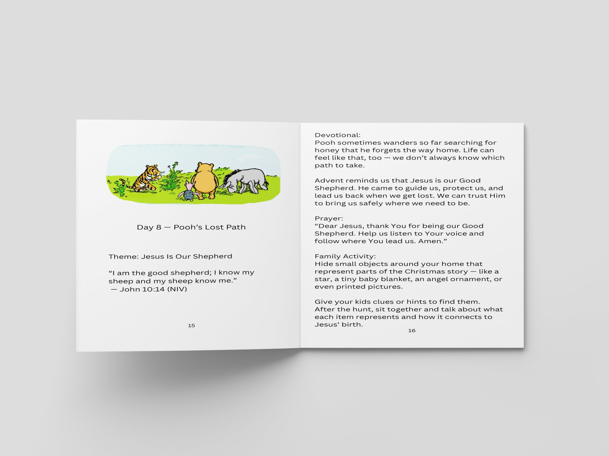 Make this Advent season meaningful and memorable with Honey Tree Tales: Advent Devotional — a heartwarming 25-day journey through Scripture, prayer, and family fun, featuring the beloved world of Winnie-the-Pooh and friends from the Hundred Acre Wood.