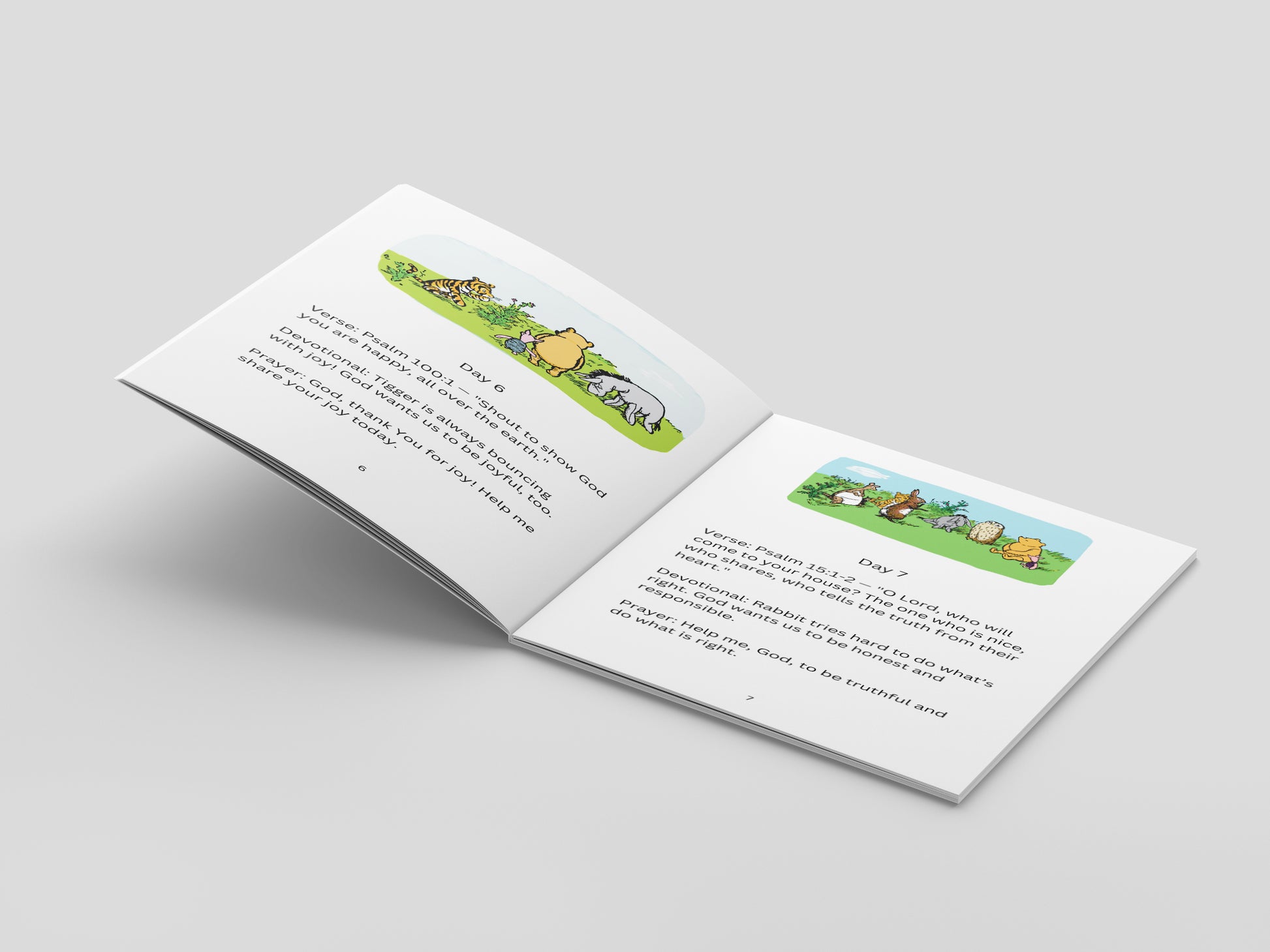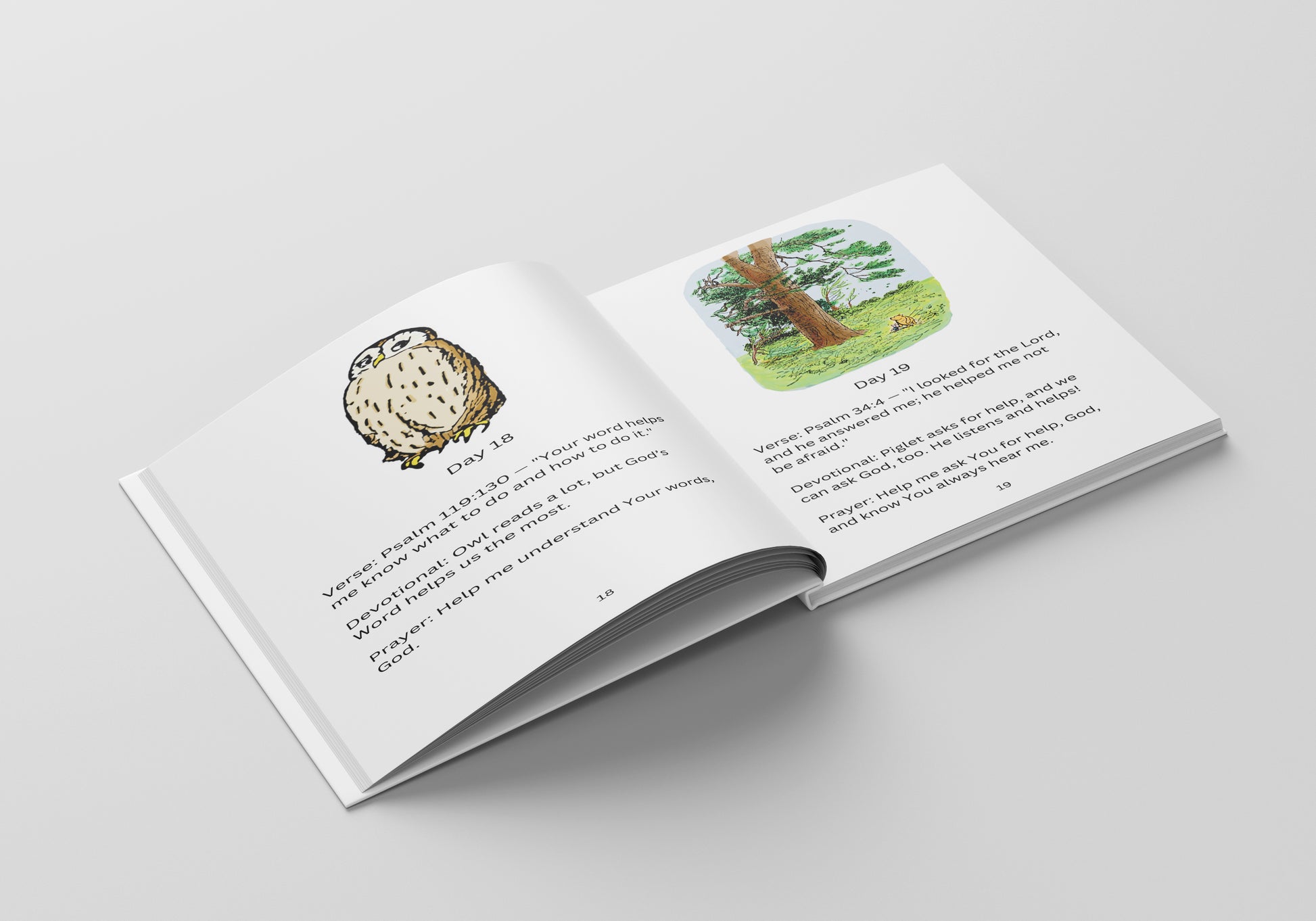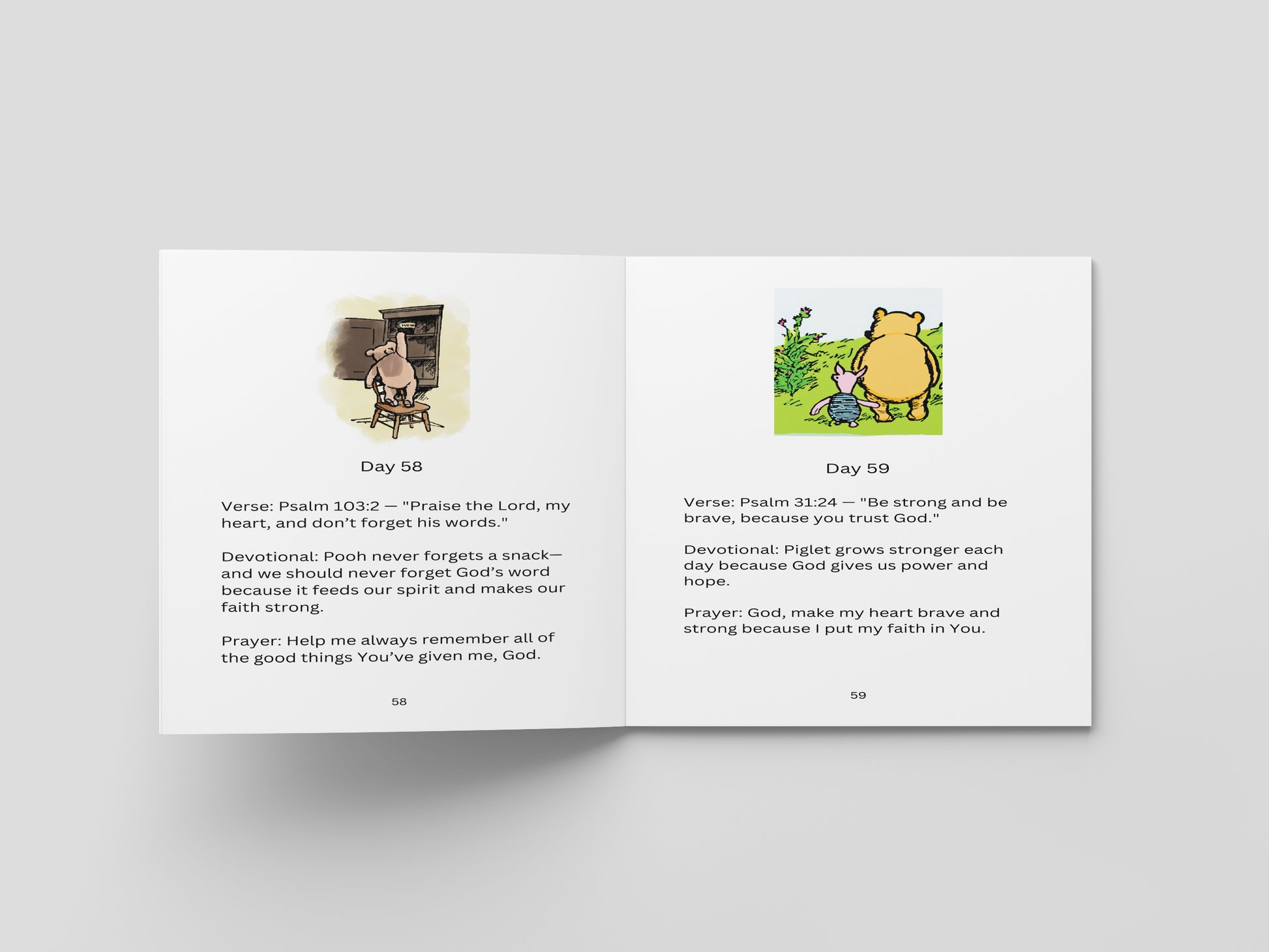 Introduce your little one to God's love with Pooh's 90-day Bible devotional for kids ages 3–10. Designed for toddlers and early readers, this daily devotional features beloved characters from the Hundred Acre Wood including Winnie the Pooh, Piglet, Tigger, Eeyore, Kanga, Roo, Rabbit, Owl, and Christopher Robin.